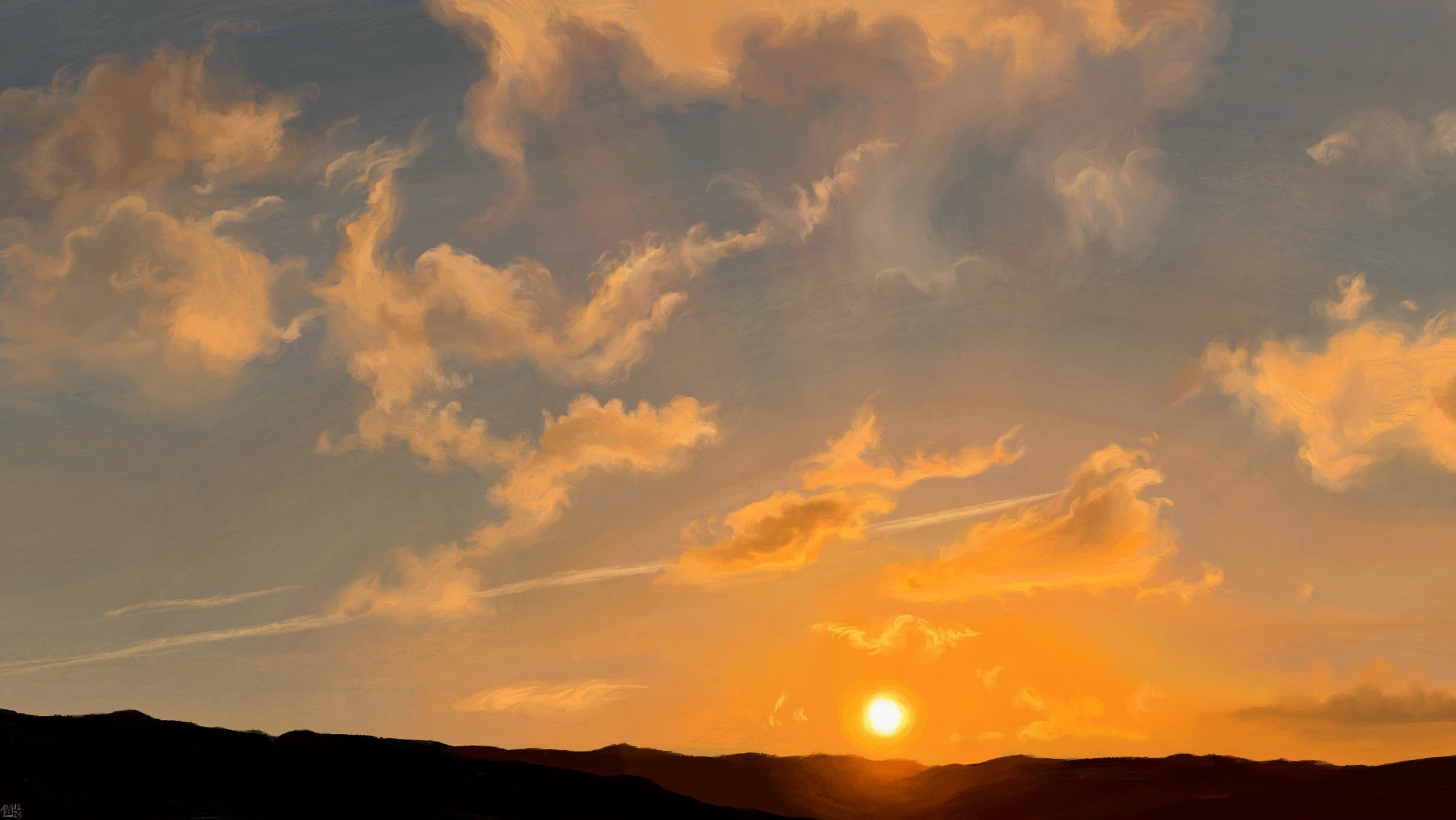 We report a few minutes before sunset: it seems to us the sun has been hovering there for a long time. We almost fall on our face several times for our staring at it to the side, but it is simply not moving. But then, of course, we look away for a moment, and it disappears.