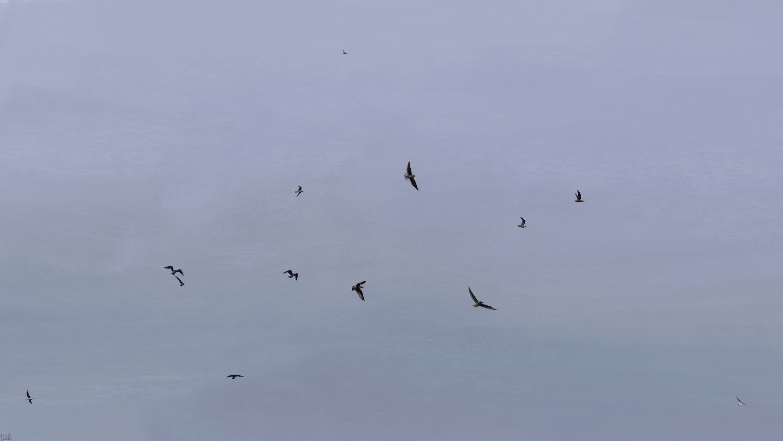 We report as we are waiting for the train. A small murmuration has risen from the trees, and has been drawing arabesques in the sky around us, like a pile of dead leaves scattered on the wind. It has been raining since the morning, a steady pour disguised as a light drizzle.