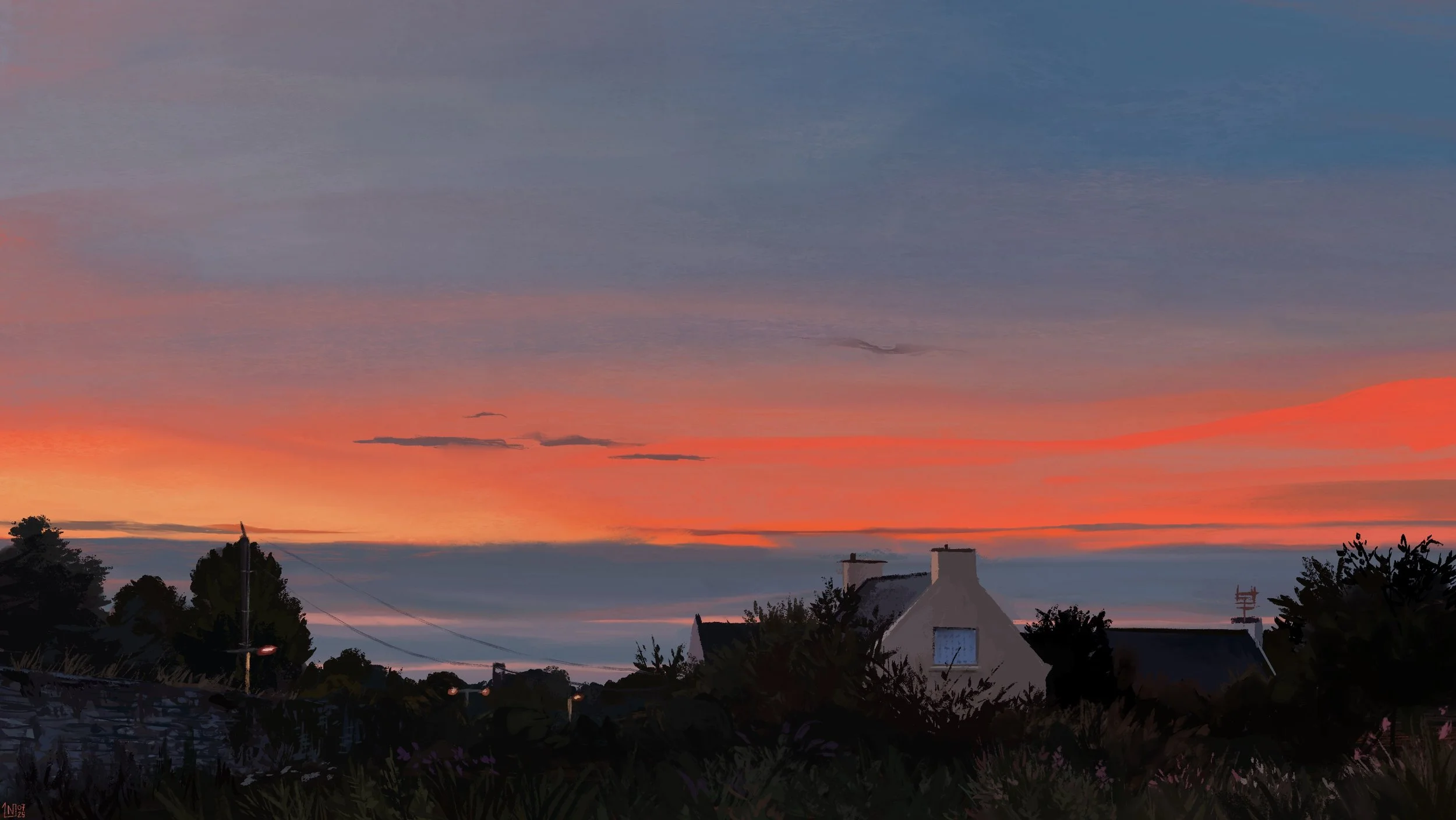 We report: time is steadily leaking out of the sky, drop after drop of sunset falling on our face. There is fresh-fallen rain glistening in shallow puddles on the ground, darker clouds to the west, and just enough colour in the sky to last us a few more minutes of day.