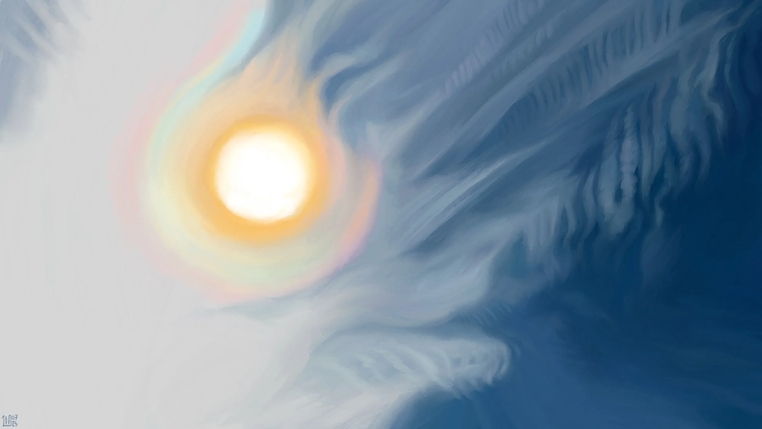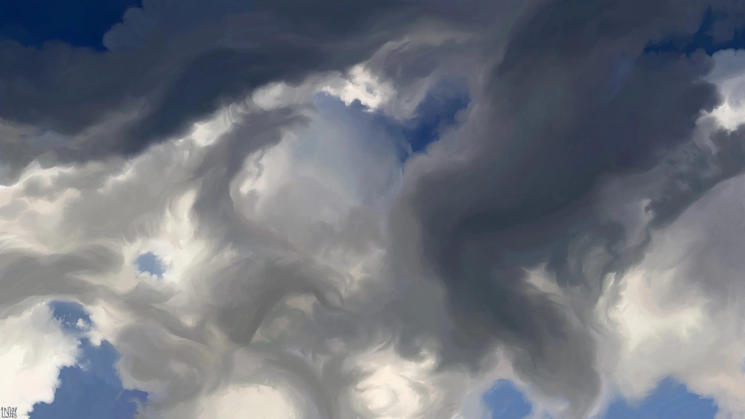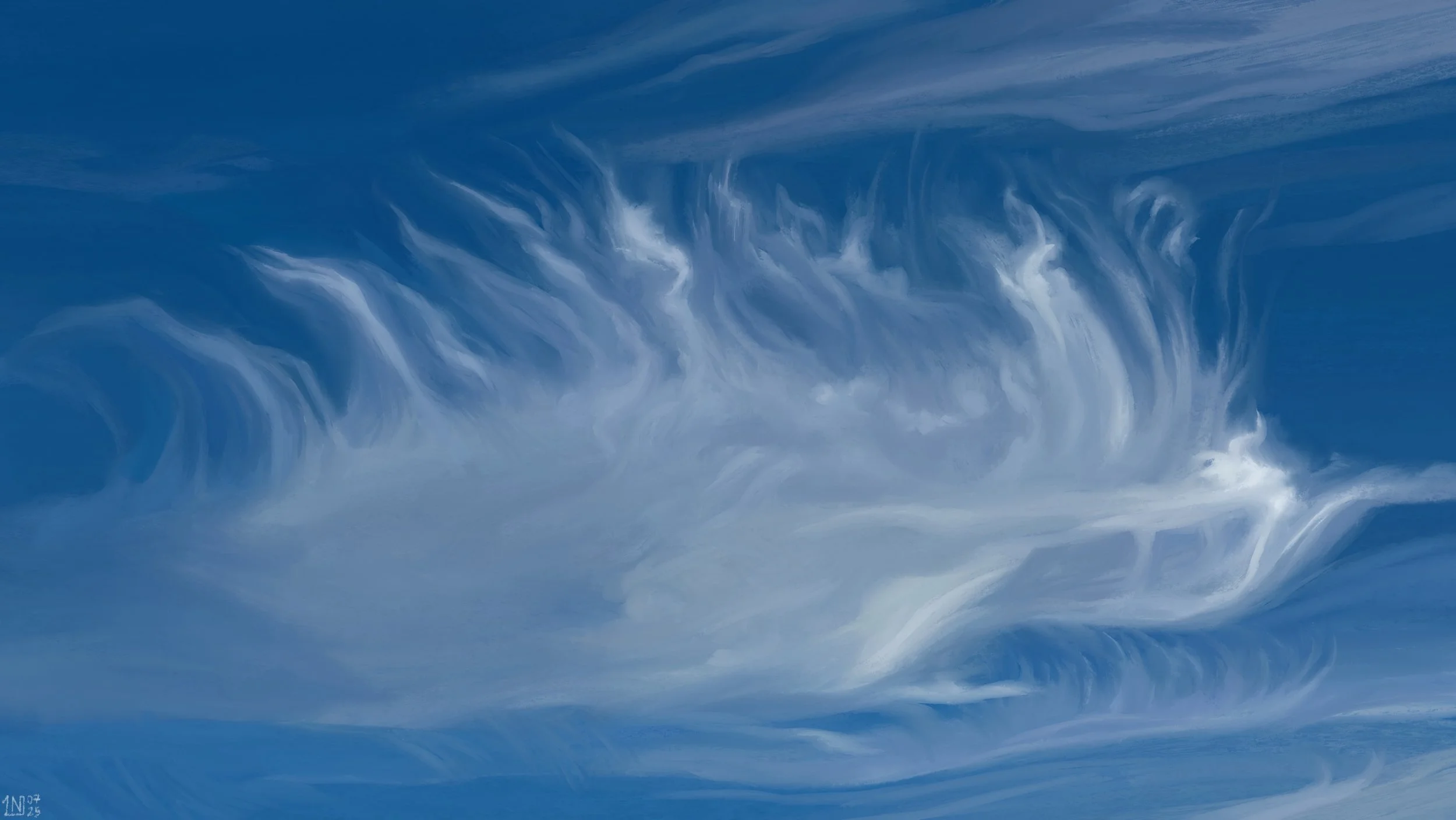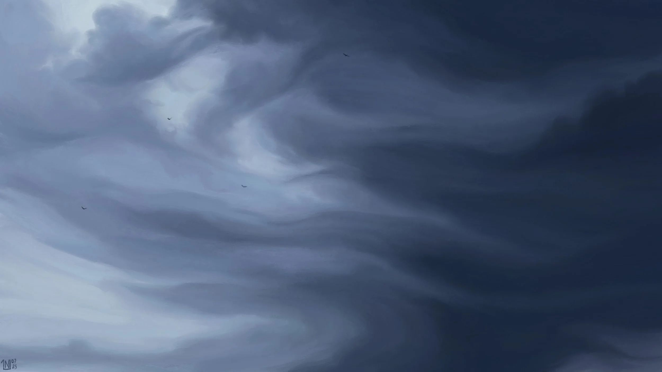 We report in windy conditions: spiders are weaving large webs between torn up clouds. The air is still sparkling with humidity from a shower, but these are no rain clouds - only passersby, which we can appreciate. For such big creatures, we are tiny specks of dust on a long path.