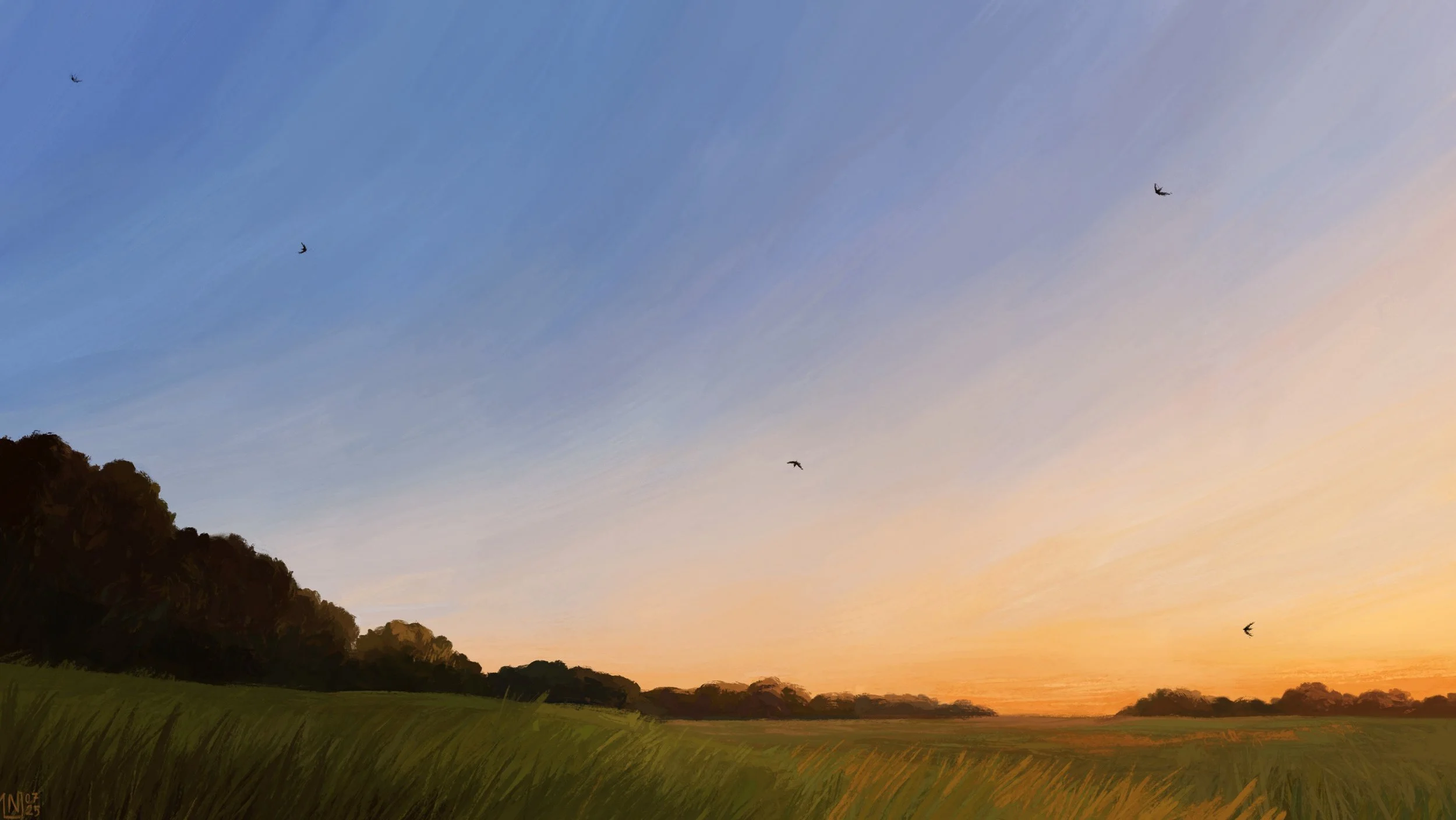 We report as nightfall grows nearer: the calls of the chimney swifts echo across the pasture, high-pitched chirps that we have been hearing through the whole evening. In the colder months, the belt of Venus would have been visible, but the horizon remains perfectly clear today.