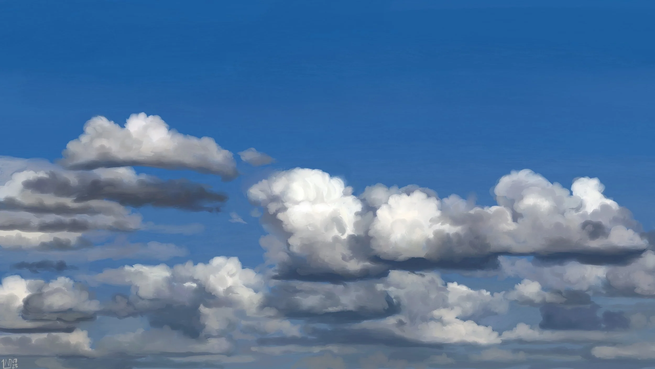 We report: today again, the clouds come close to full bloom. There are developing cells everywhere, pockets of hot steam sculpted into strange shapes that consistently catch our eye. They never seem to reach the next stage of potential storm, however, still subject to gravity.