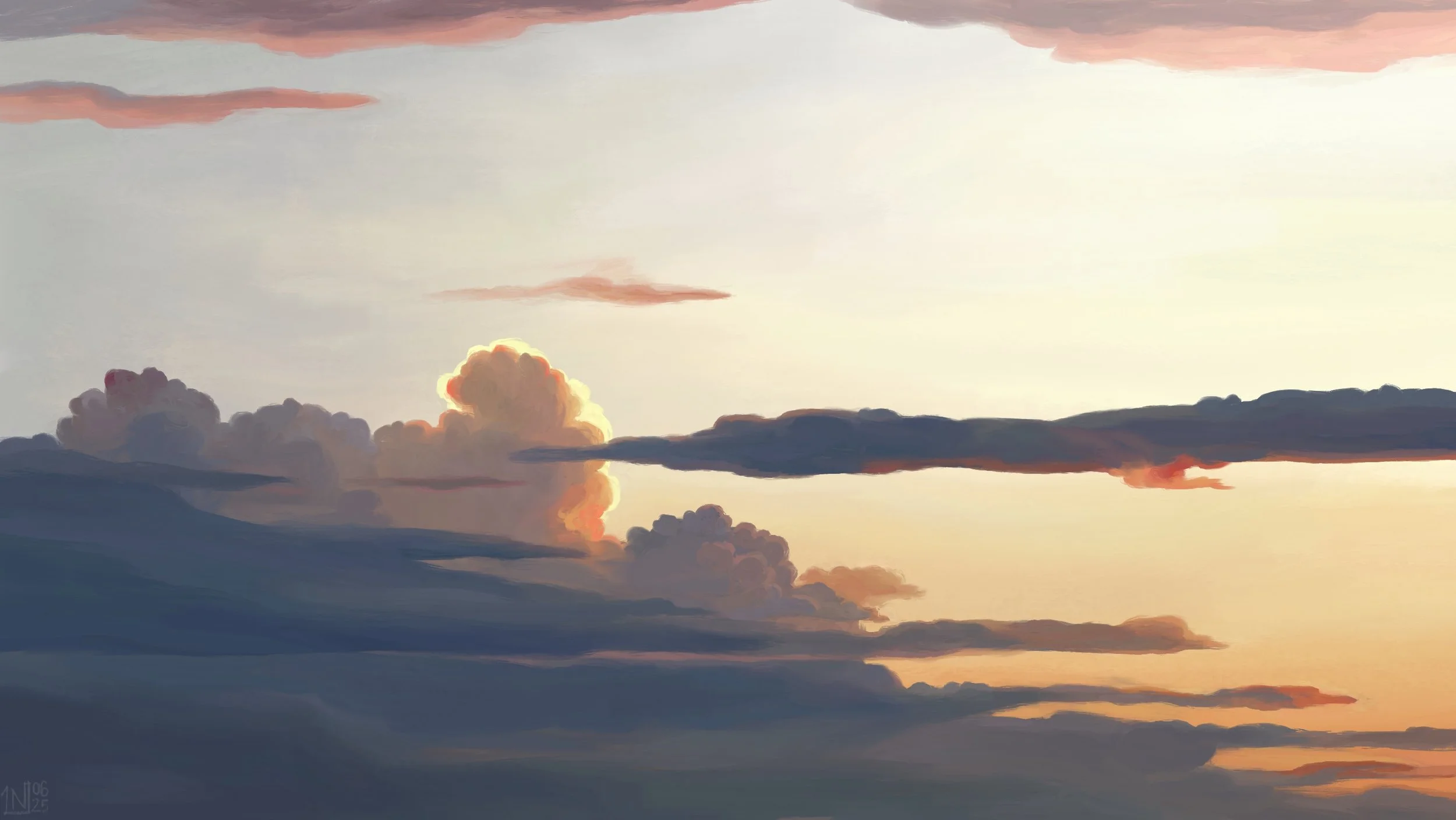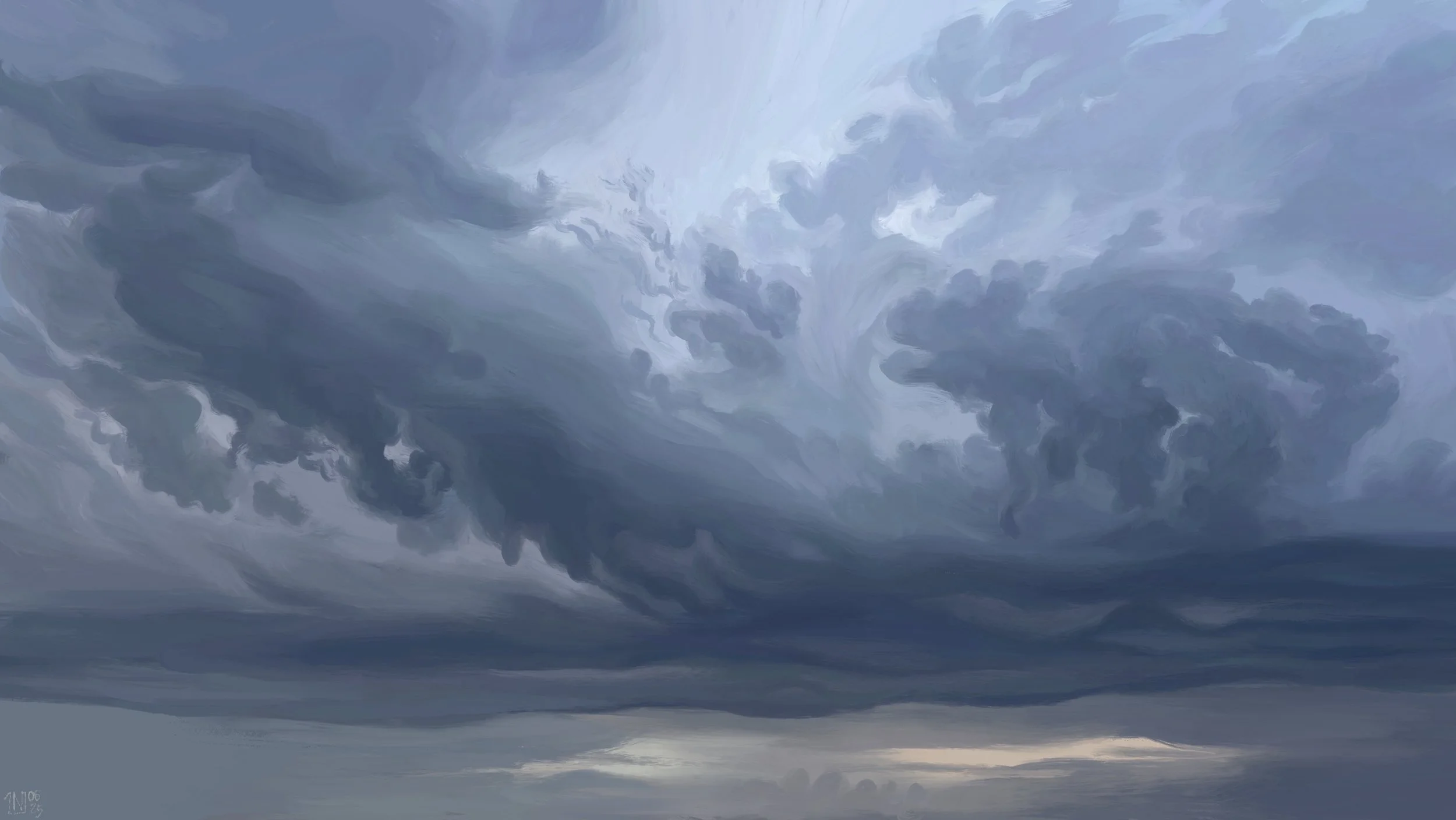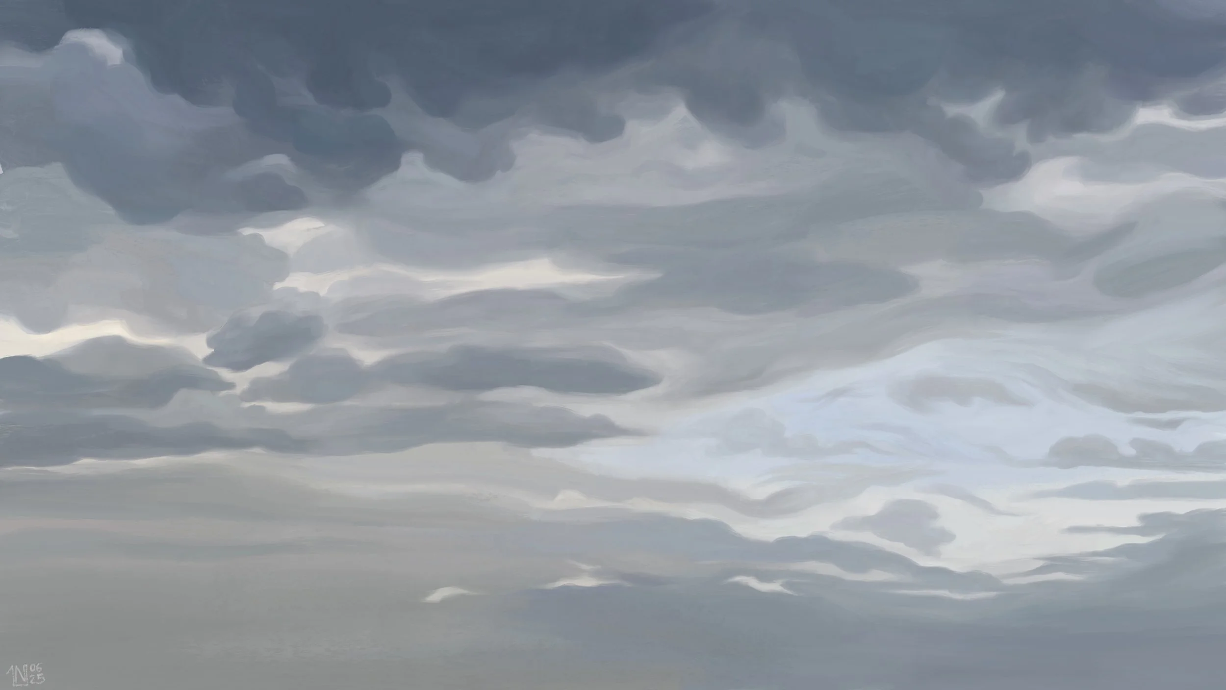 We report: the sky has frozen into the motion of the wind, all the ways across, turbulence and all. This quilt is stitched in sunshine, ice, and time - fragile pieces of fabric, and it is no wonder that it is already starting to unravel. The waves get rowdier among the clouds.