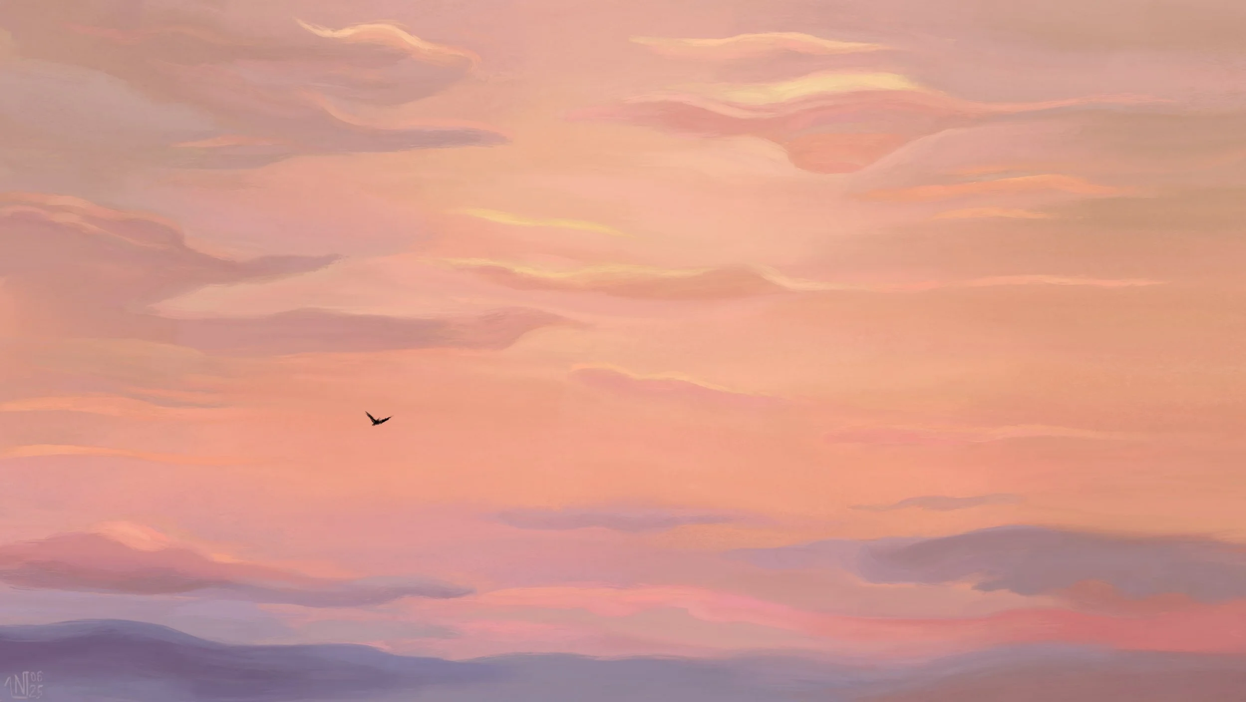 We report somewhere between two shades of pink: brand new clouds have been appearing since day break, and most of them have not moved since. Despite the absence of movement up there, it is windy down here. The gulls are endlessly circling the shore, riding the gale.