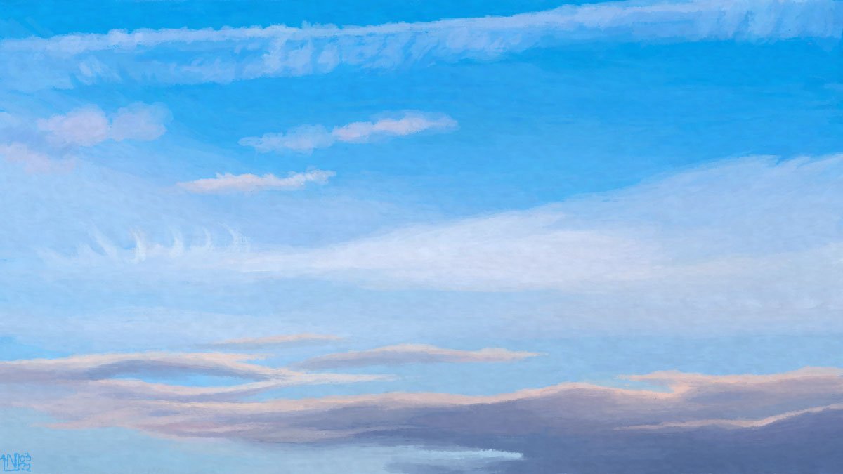 We report our well-loved sky, travelled through by the same water countless times over. Well-loved by us who look up to it whenever we get a second; well-loved and weathered down and yet all new with every moment that passes.