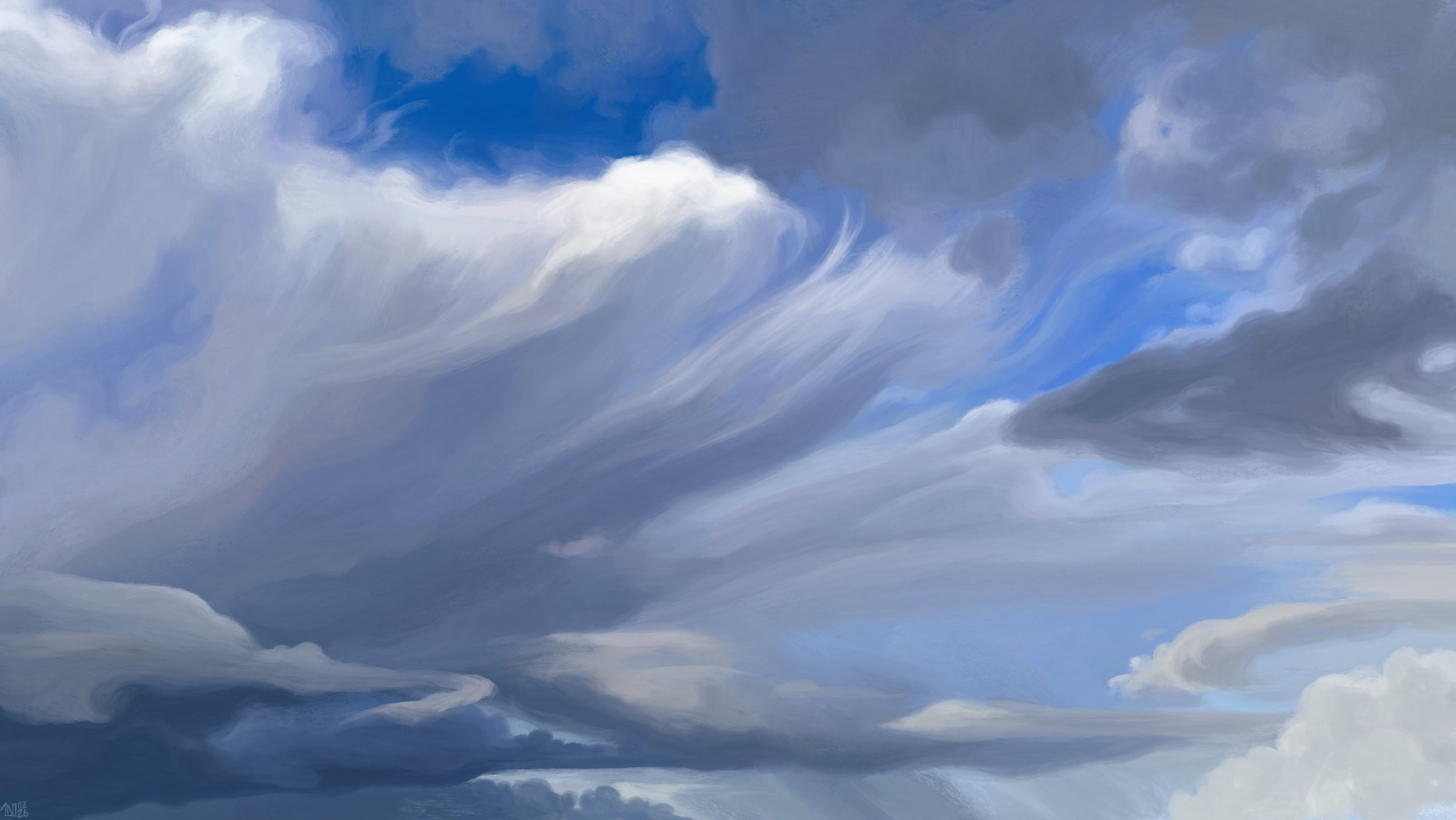 We report from a hollow in a cloud: extremely cold at this height, but everything is light and shade, and we cannot see the ground from here. The cloud where we are is at mid-altitude, but we watch it expand above us, and we watch the lower clouds move very fast beneath our feet.