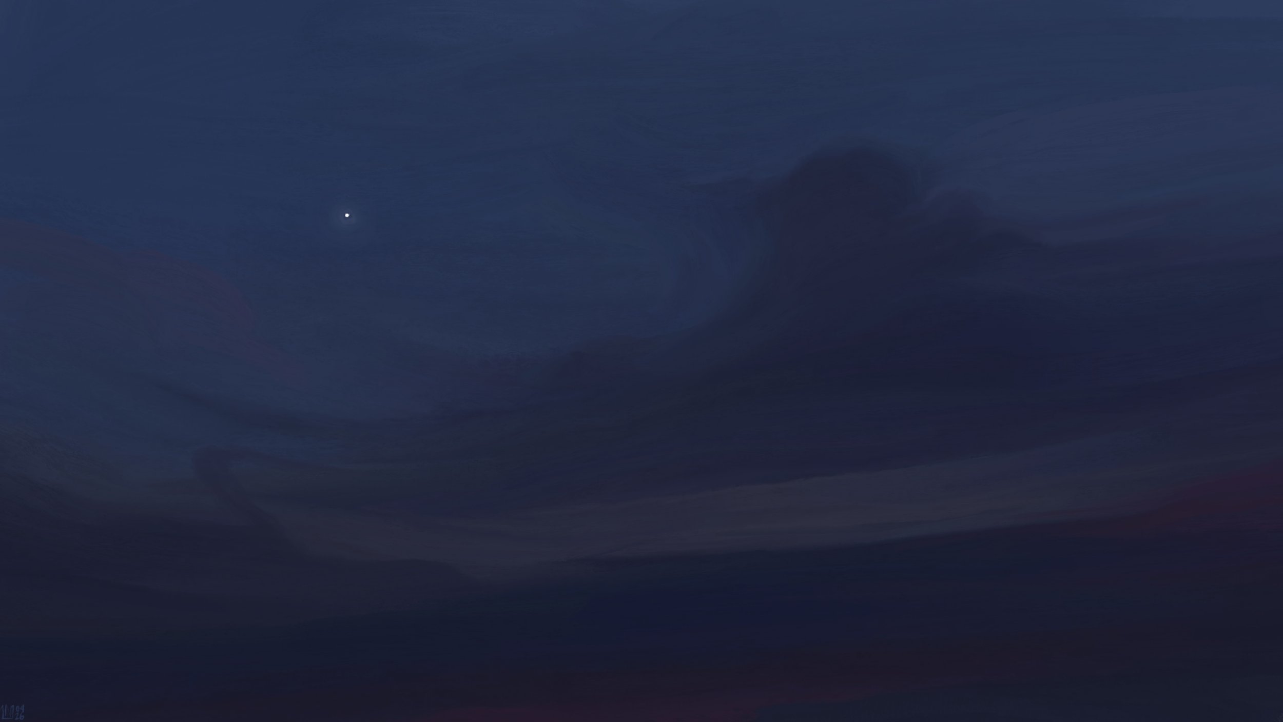 We report: spring night sky in the Northern Hemisphere. Venus vanishes behind the horizon soon after sunset, Jupiter remains for a bit. When it gets dark, before midnight, we see Procyon and Capella, Castor and Pollux, Sirius, Betelgeuse and Aldebaran (our favourite neighbours).