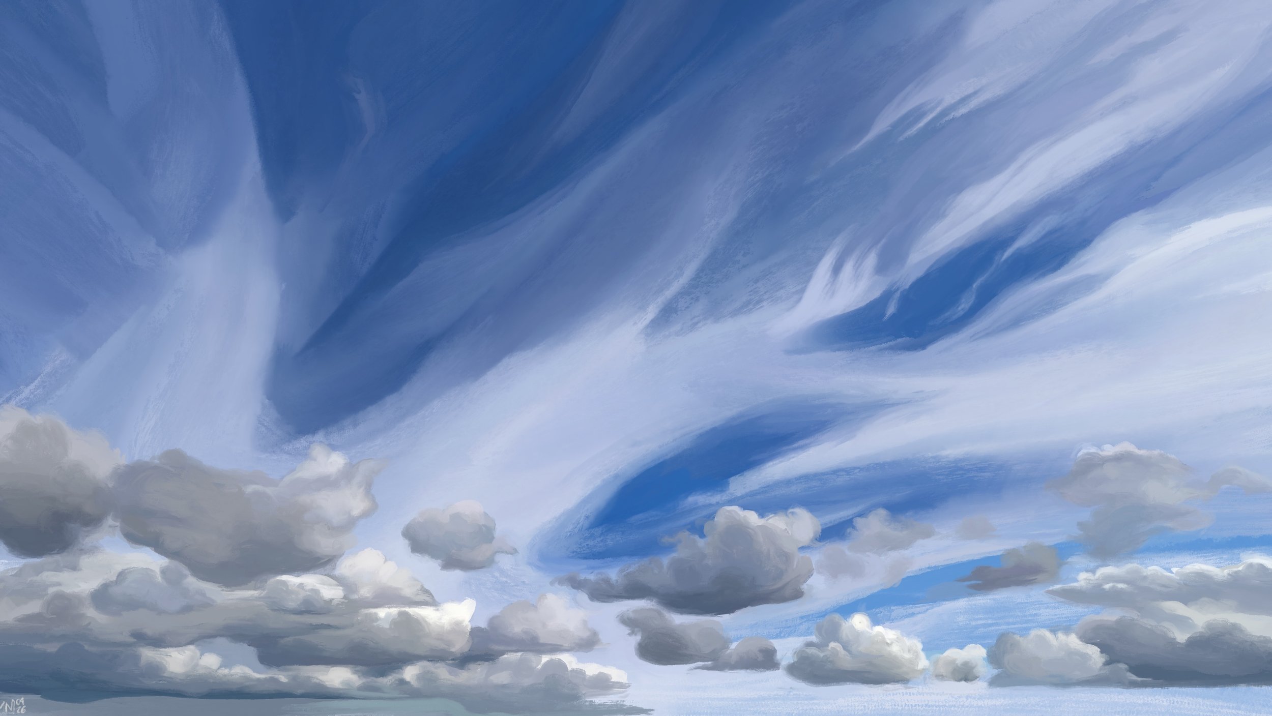 We report: today again, there was rain in the morning. It went away before noon, and ever since, the sky has been especially large and bright. We are standing against the wind, so the clouds are moving towards us and over our head. The air is light, full of pollen.