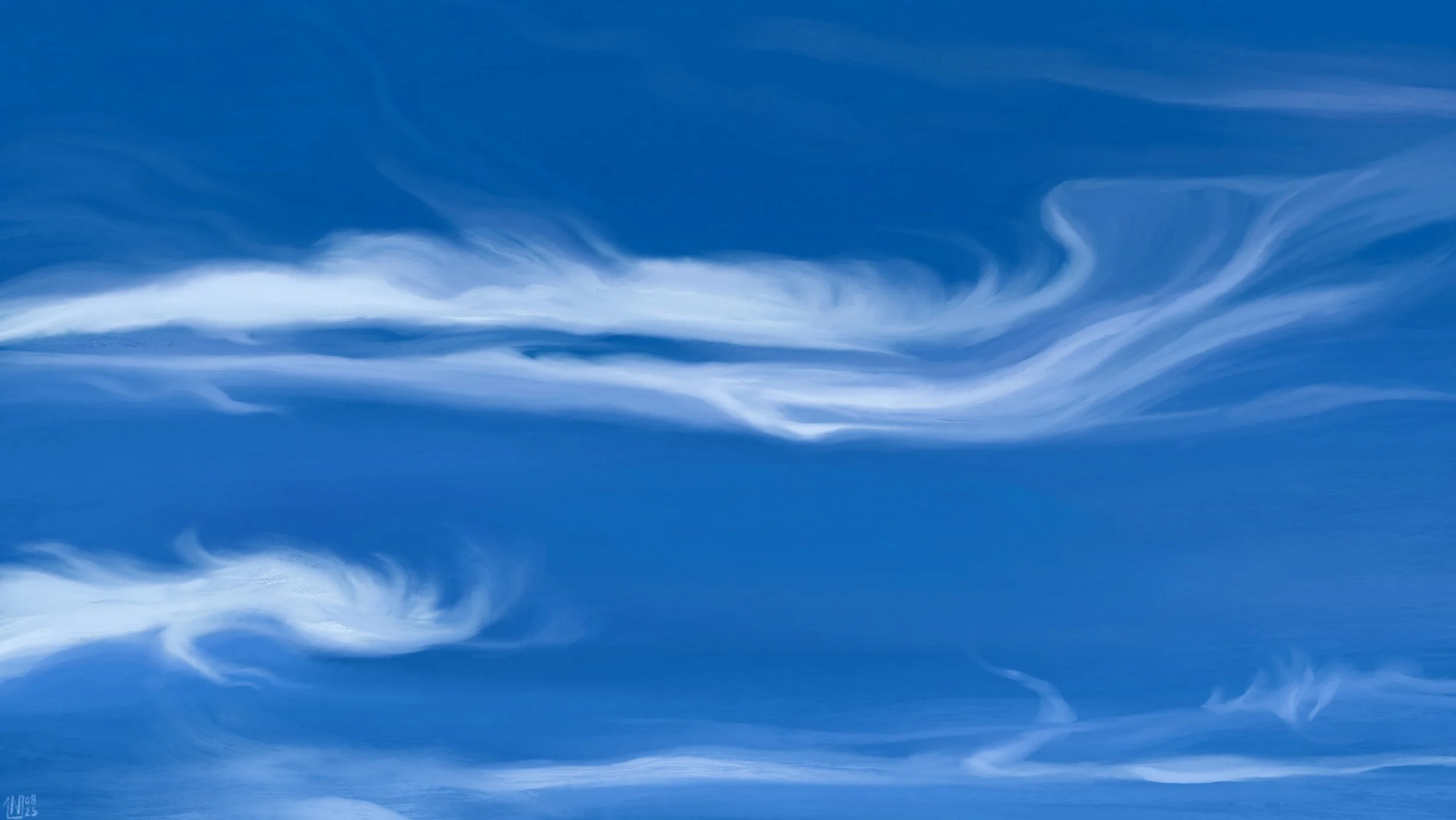 We report: far off the coast, warm and cold fronts are spinning into one another in cyclogenesis. Somehow, as a result of the flapping of these large butterfly wings, mare’s tails are multiplying in the sky, wherever it is coldest. There are talks of precipitation on the wind.