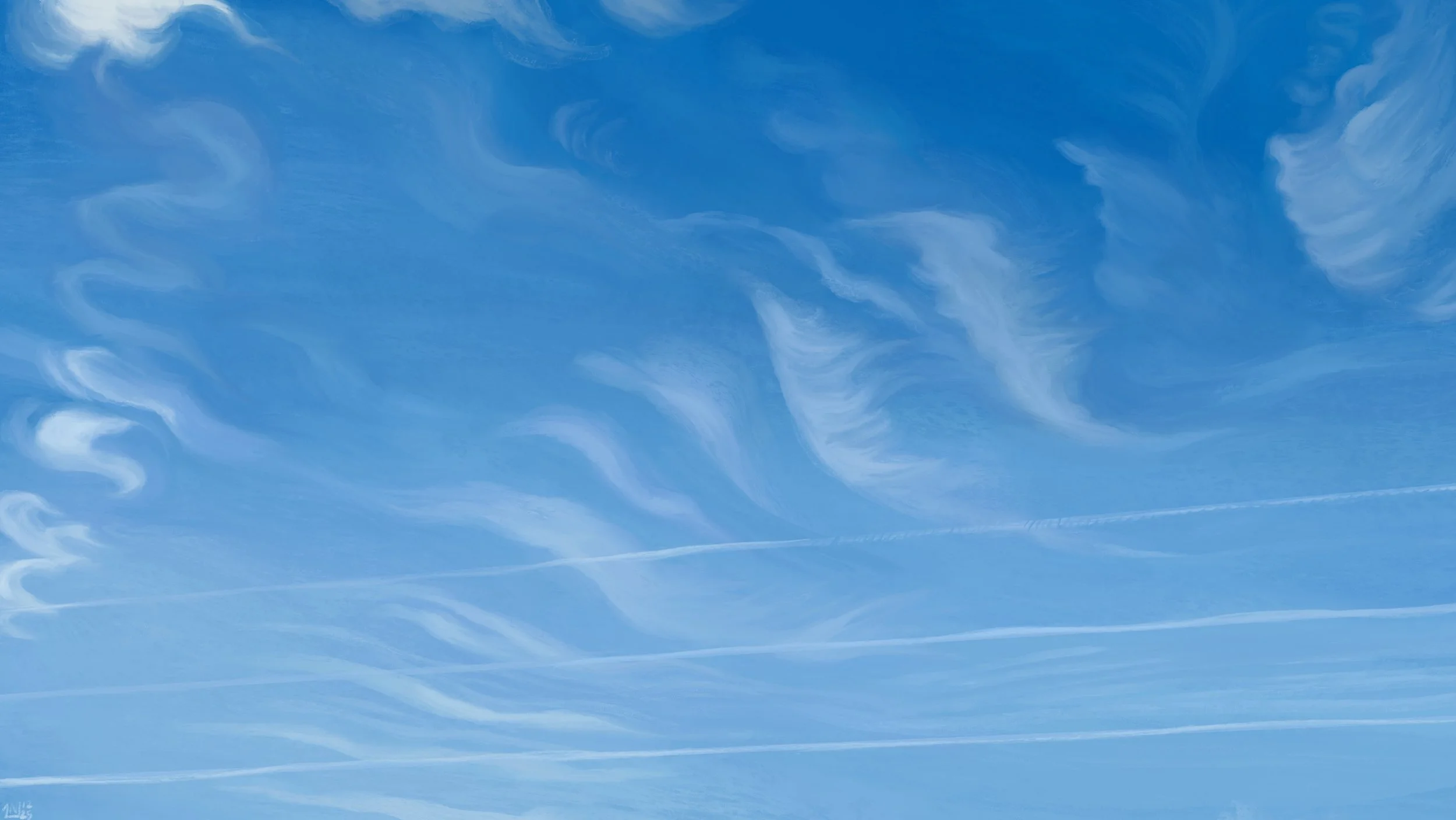 We report: we watch layers of air mingling along gravity waves. We hear a little bit of music in the frequency of the waves; harmonies resonate in the ebbing of the clouds. On the ground, the wind is also drawing tight ripples on puddles, small-scale practice for grander schemes.
