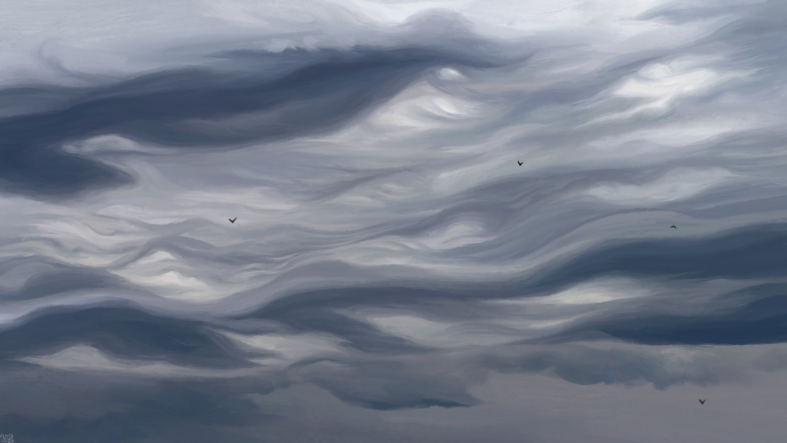 We report in troubled waters: the crashing waves of the sky make no sound, but they are no less impressive to the eye. We always expect the whole world to stop when the clouds reach a certain level of oddity; most of the time, nothing happens. The sky always clears up, too.